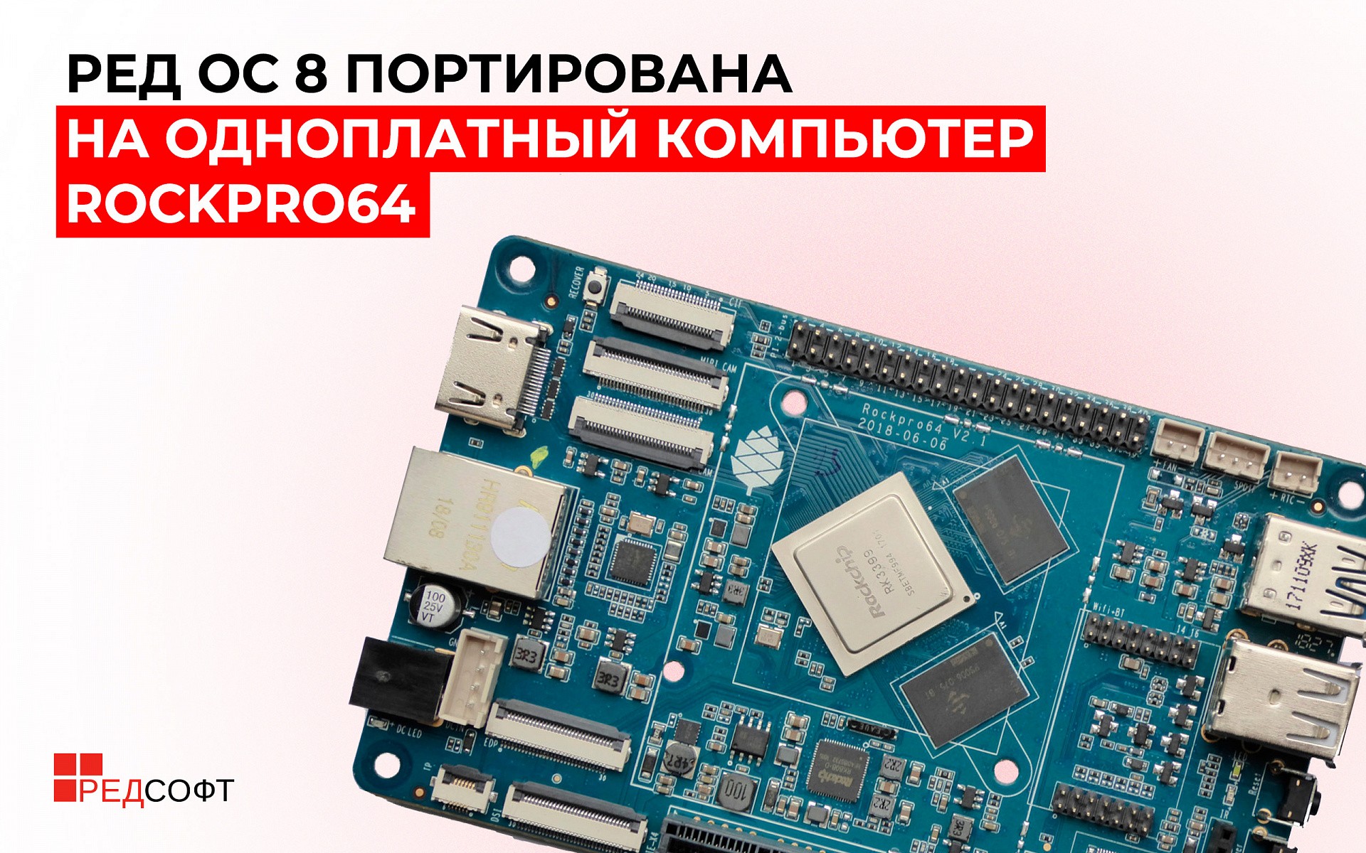 Специалисты компании «РЕД СОФТ» опубликовали образ операционной системы РЕД ОС 8, адаптированный для одноплатного компьютера ROCKPro64. Это популярная платформа на базе процессора Rockchip RK3399, отличающаяся высокой производительностью и широкими возможностями для разработки и промышленного применения.